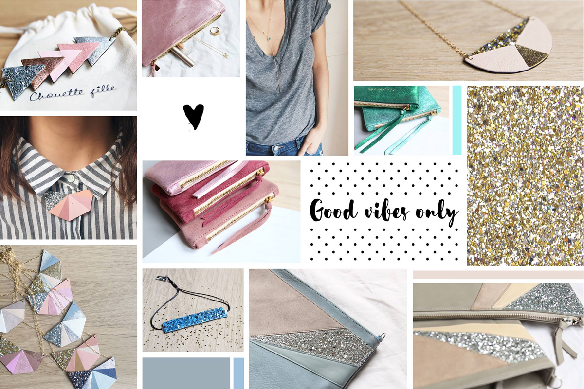 Des colliers, des headbands et des pochettes si délicates qui mêlent des cuirs magnifiques et des paillettes de fée pour illuminer notre cou ou notre chevelure. Une collection qui a vite fait tourner la tête d’une marque connue, délicate et poudrée, qui a choisi de les vendre dans ses boutiques (chut … vous les avez peut être croisés chez Les Petits Hauts aux Terrasses du Port).
