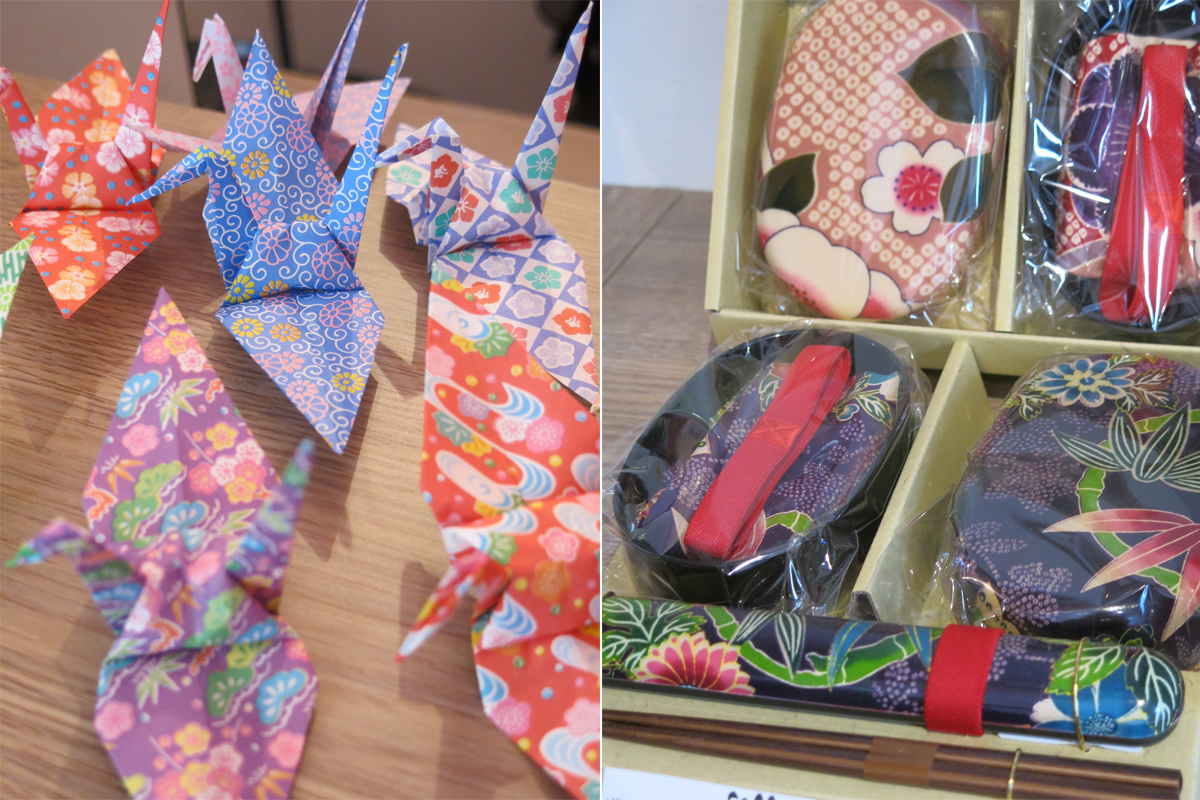 Mais aussi pour les maisons bento de Hakoya, pour les superbes baguettes dessinées et laquées réalisées par un artisan japonais réputé pour son savoir-faire, pour les très belles créations de sacs et pochons en kimonos traditionnels et cuir de Madame Toshiko (Gunji) d’Osaka.